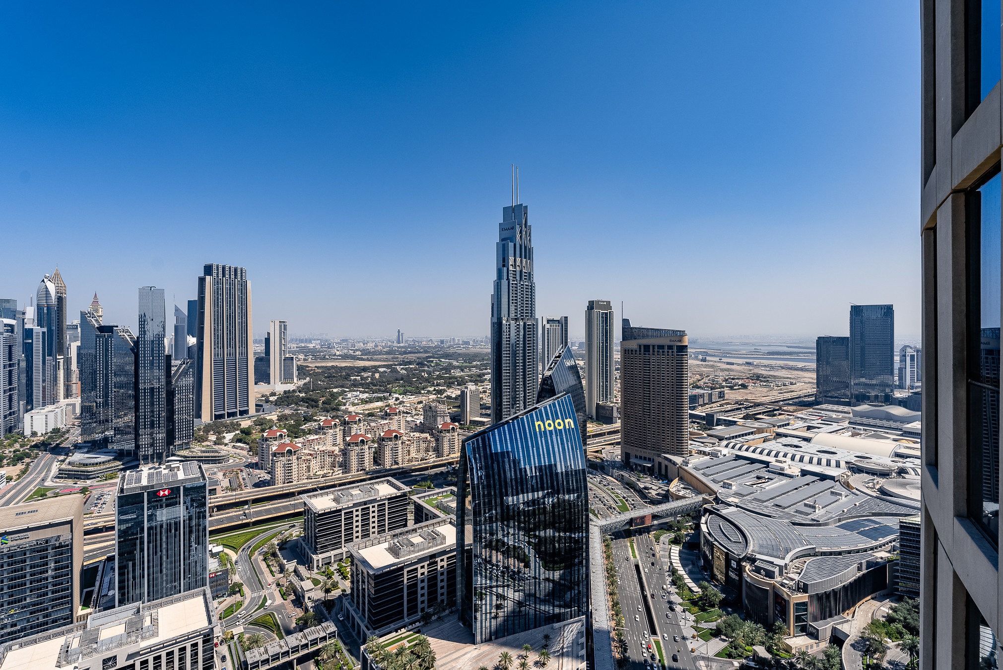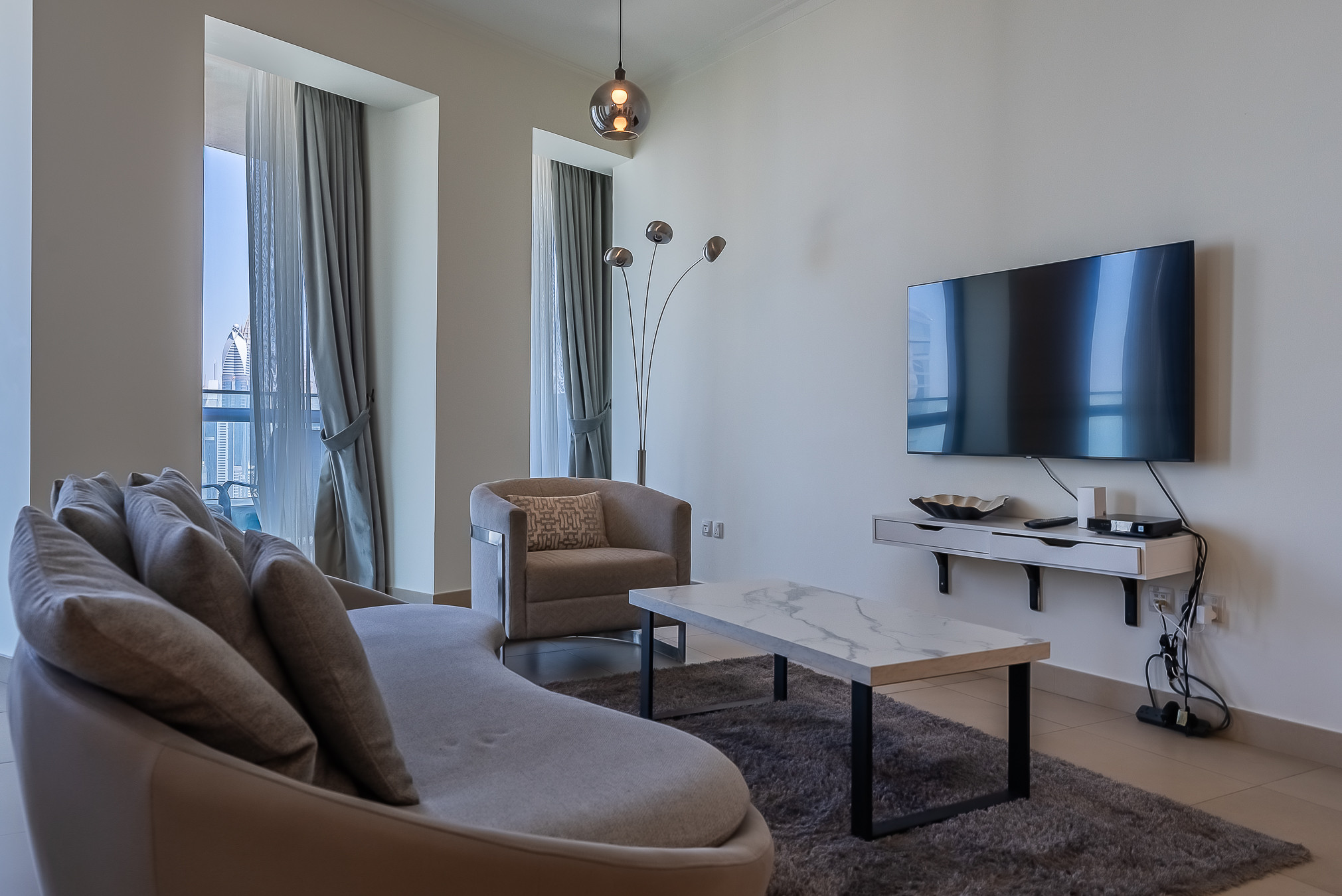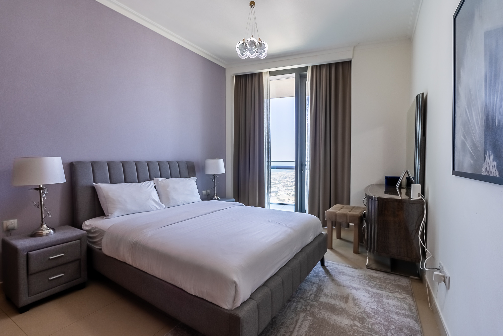 The bedroom is thoughtfully designed with high quality furniture and bed settings. The property features a fully equipped kitchen with all appliances, modern bathroom and guest toilet filled with toiletries and storage facilities. The living room is well put together with a classic look, sofa, smart TV and dining area overseeing beautiful views of the city. The balcony opens up towards beautiful views of the Downtown Dubai.