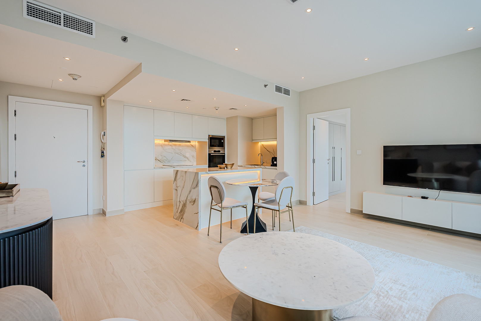 Elegant design and fully equipped 1 bedroom apartment located in the heart of Dubai Marina , close to Marina Mall. The area is vibrant ,with many restaurants , shops and walking areas around. The apartment is a perfect balance between elegance and functionality. Designed with stylish furniture, the flat is very welcoming, embracing warm and soft undertones. The living room is spacious, and it features a large sofa, smart TV and dining area. The kitchen consists of high-quality appliances like stove, microwave , toaster, water kettle ,cooking pots. The bathrooms are filled with toiletries and the beds are covered with fresh linen and towels. Our guests can simply move in and start living as this lovely apartment is equipped with everything they might need, to ensure a smooth and perfect stay!