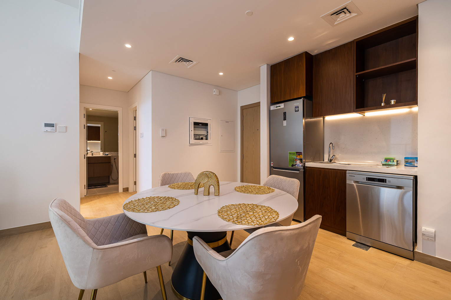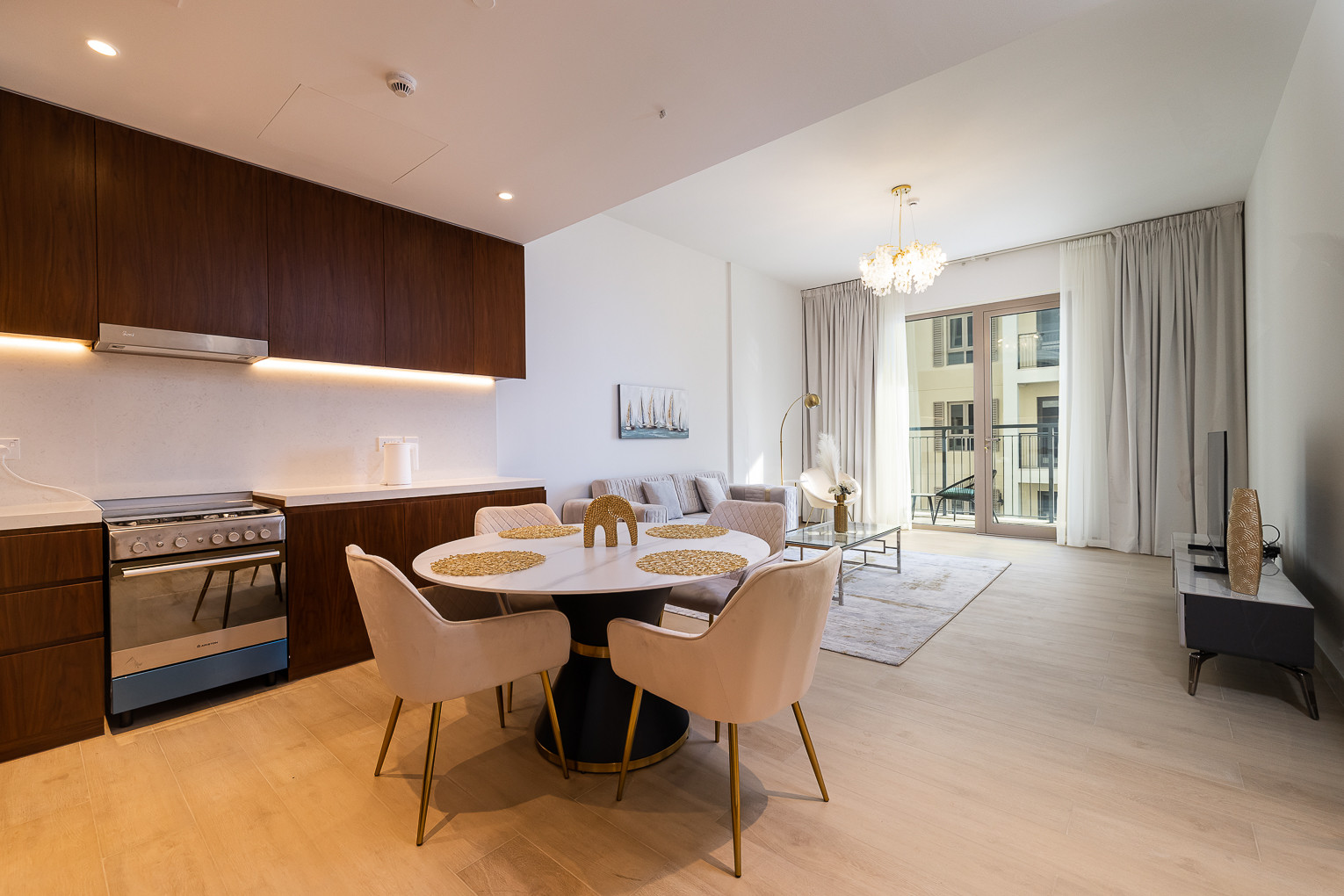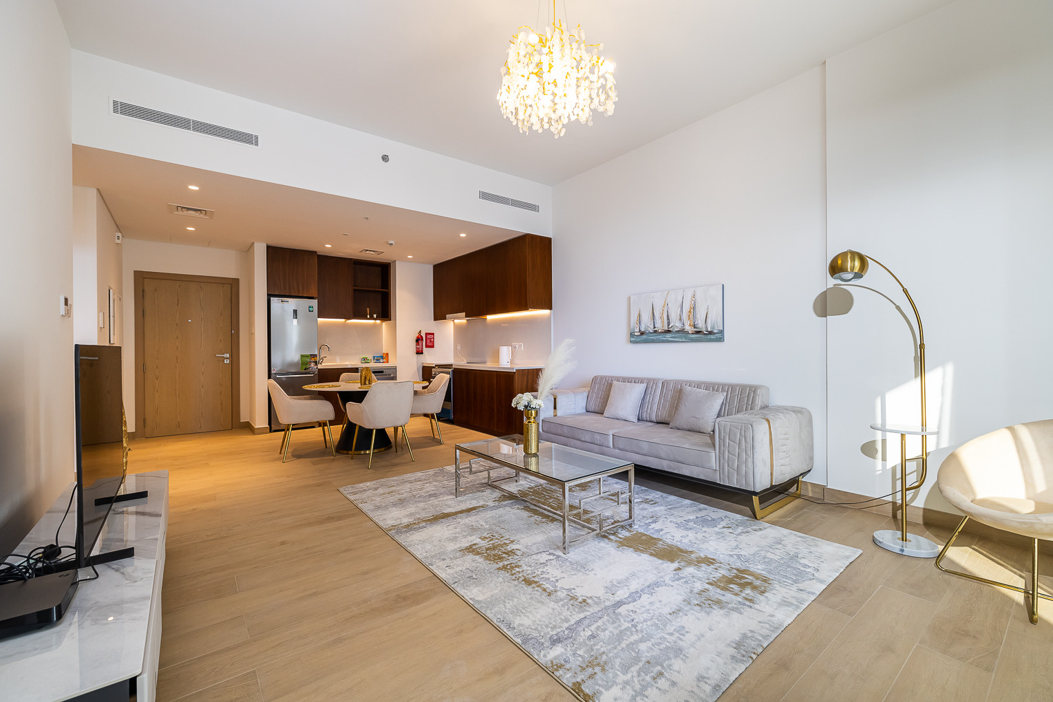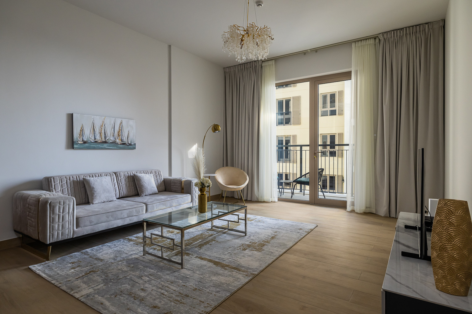 Newly furnished 1BDR apartment that will amaze you with its functionality and aesthetics, from the chic décor to the amazing views from the balcony. The stylish bedroom is well-equipped with a king-size bed, a built-in wardrobe, and quality bed sheets. The tastefully designed living room is styled with a large sofa, smart TV and dining area. The property features a fully equipped kitchen with all appliances, modern bathrooms filled with toiletries and storage facilities. The apartment features high-end luxury furniture and a contemporary design that creates a warm and inviting atmosphere. The balcony is accessible from the living room and is equipped with outdoor furniture, allowing you to enjoy the astonishing views of the La Mer.