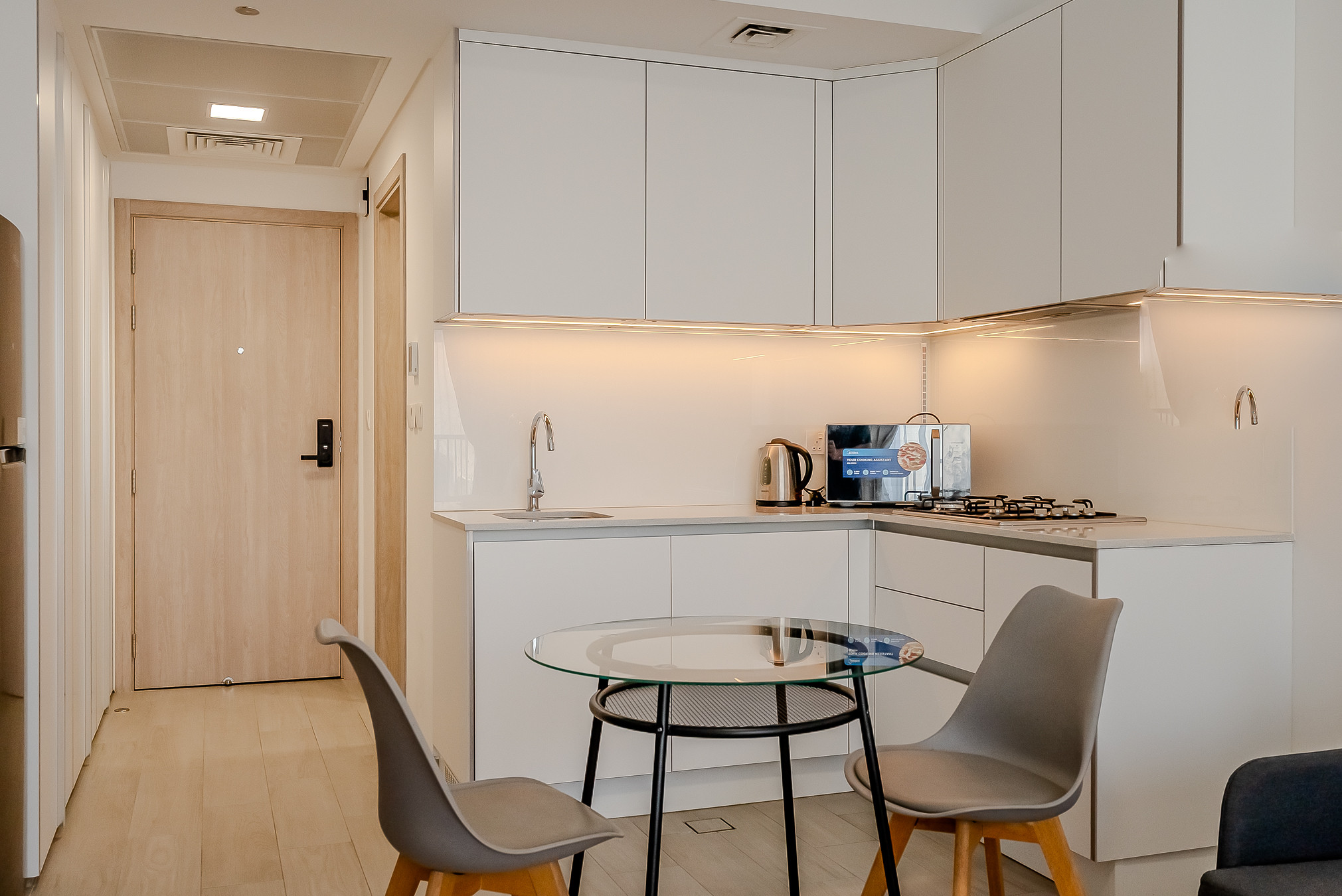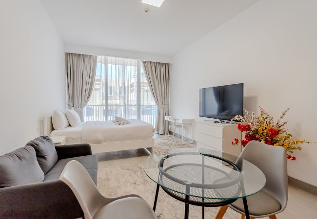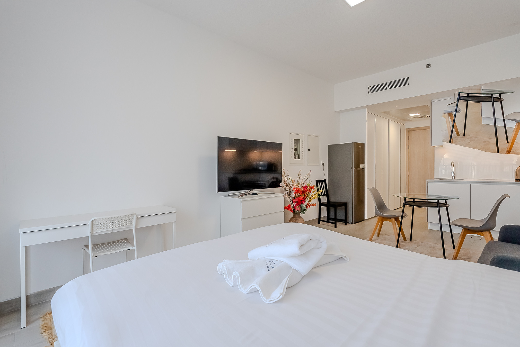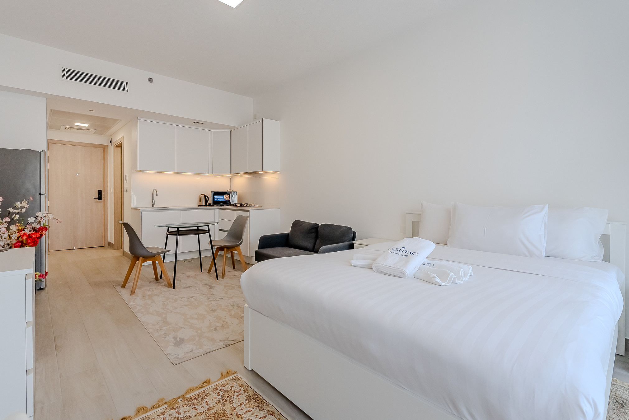 Beautiful studio apartment in JVC, fully furnished with beautiful décor, giving a light toned color which make you feel warm and pleasant of being home. The apartment is designed with modern and practical elements which provides maximum comfort and the best experience during your visit in Dubai. The apartment comes with a property swimming pool, a gym, and much more to make your trip memorable and enjoyable!