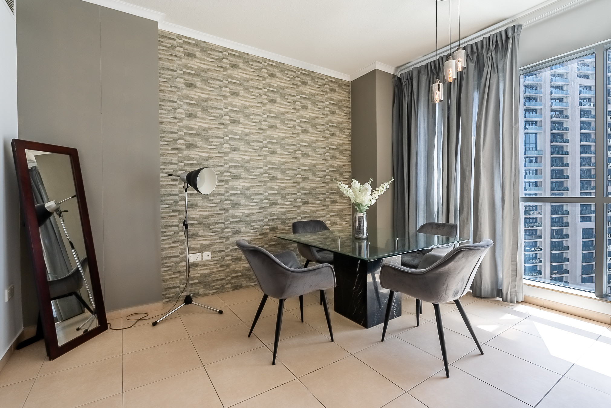 Furnished 1-bedroom apartment that has everything you need for an amazing stay. From the chic décor to the mesmerizing views from the balcony, this apartment will amaze you with its functionality and simplicity. The bedroom is well designed with modern interiors and lots of natural light coming through spacious windows which given the un-obstructed view outside. The neutrally light-room colors with blue accents make this gorgeous apartment feel so cozy and homey.