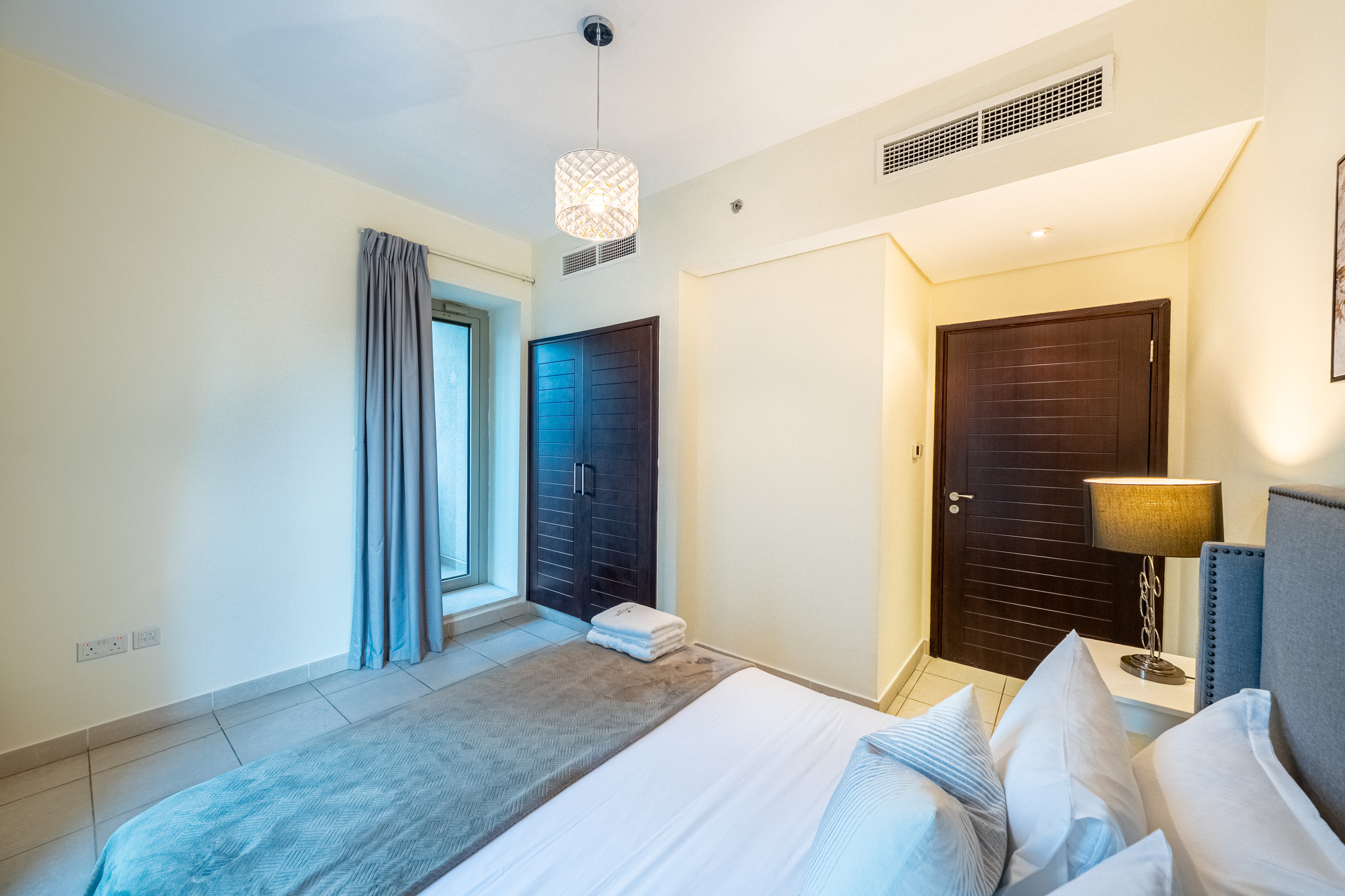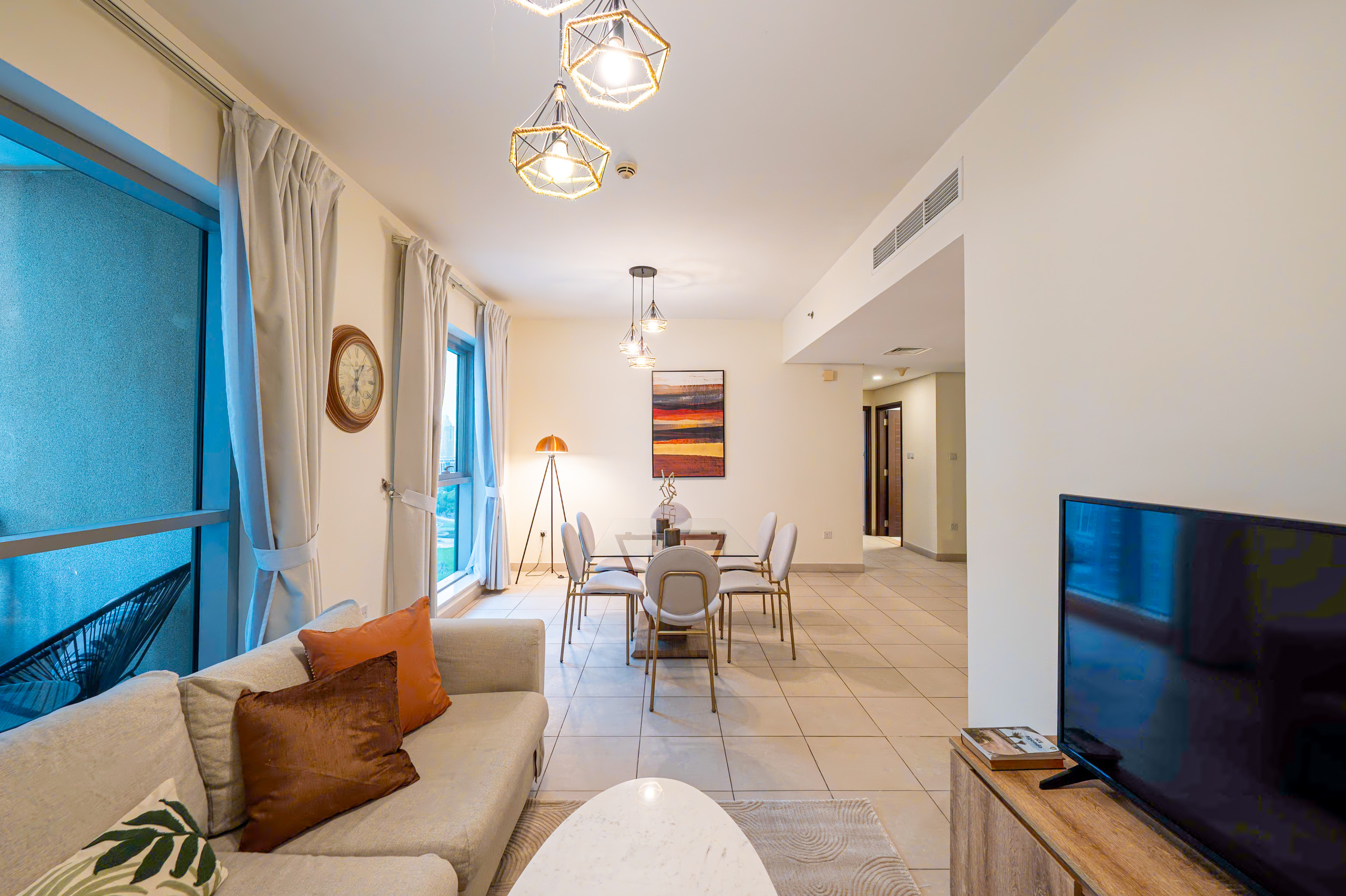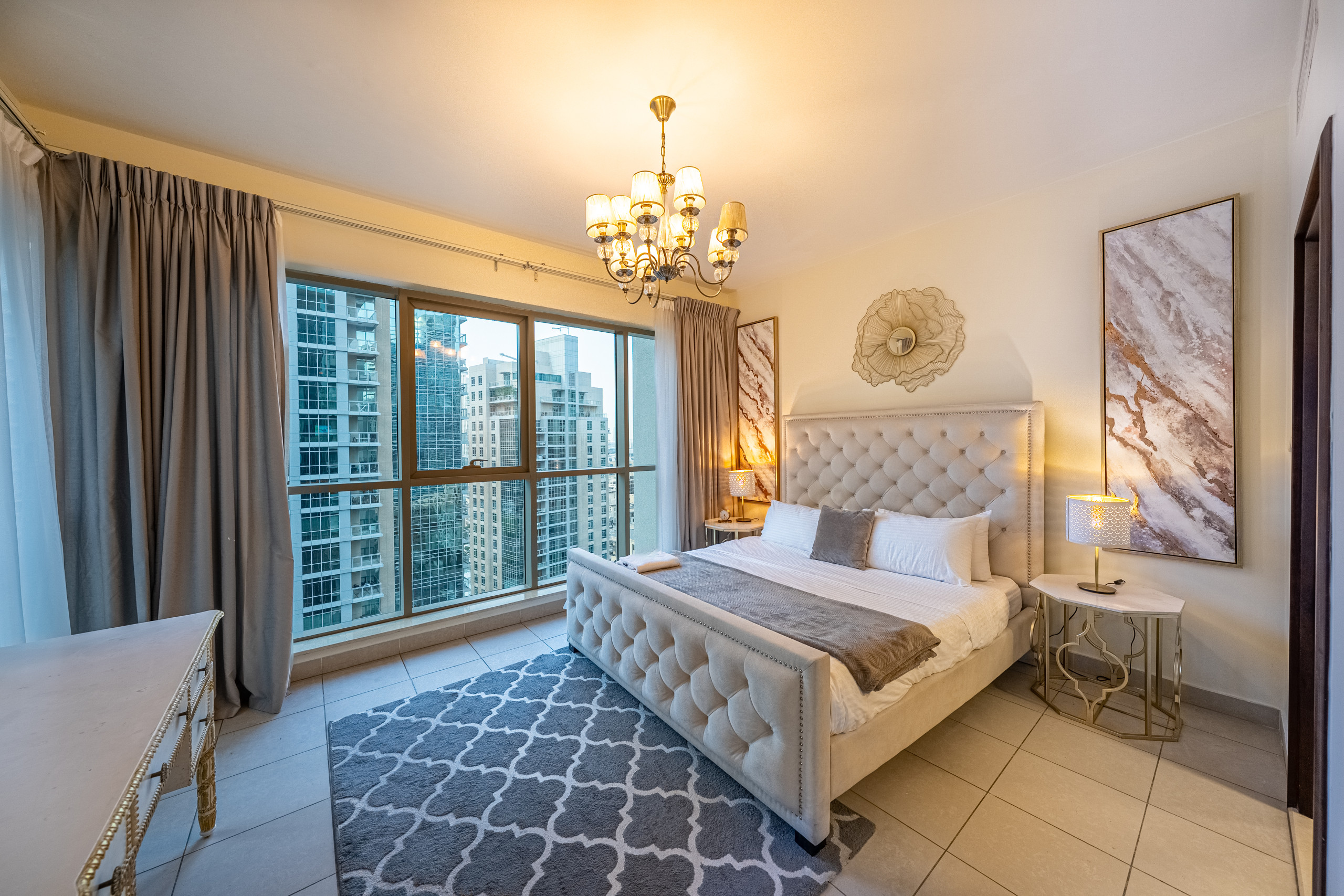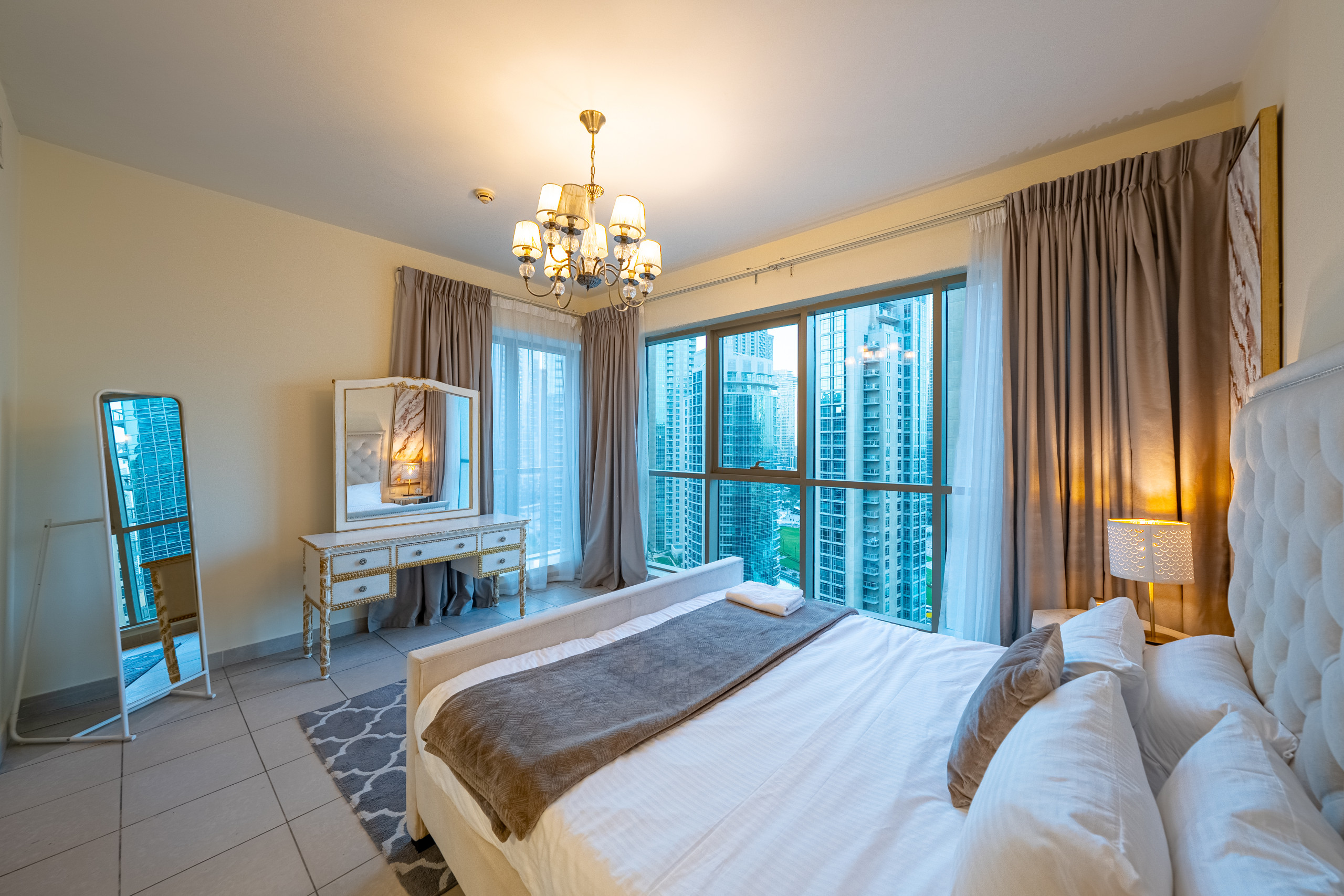 The bedrooms are thoughtfully designed with high quality furniture and bed settings. The property features a fully equipped kitchen with all appliances, modern bathrooms with toiletries and storage facilities. The living room is well put together with a classic look, sofa, smart TV and dining area overseeing beautiful views of the city.