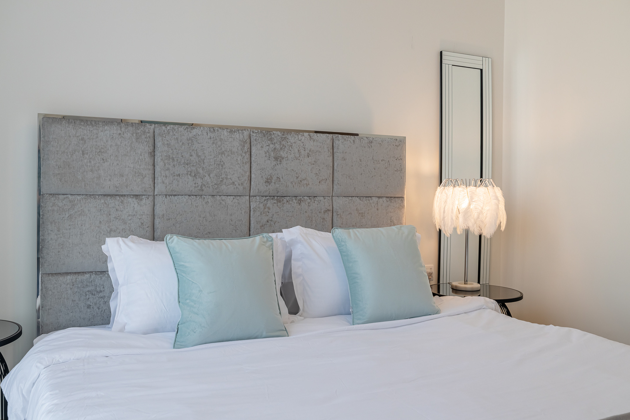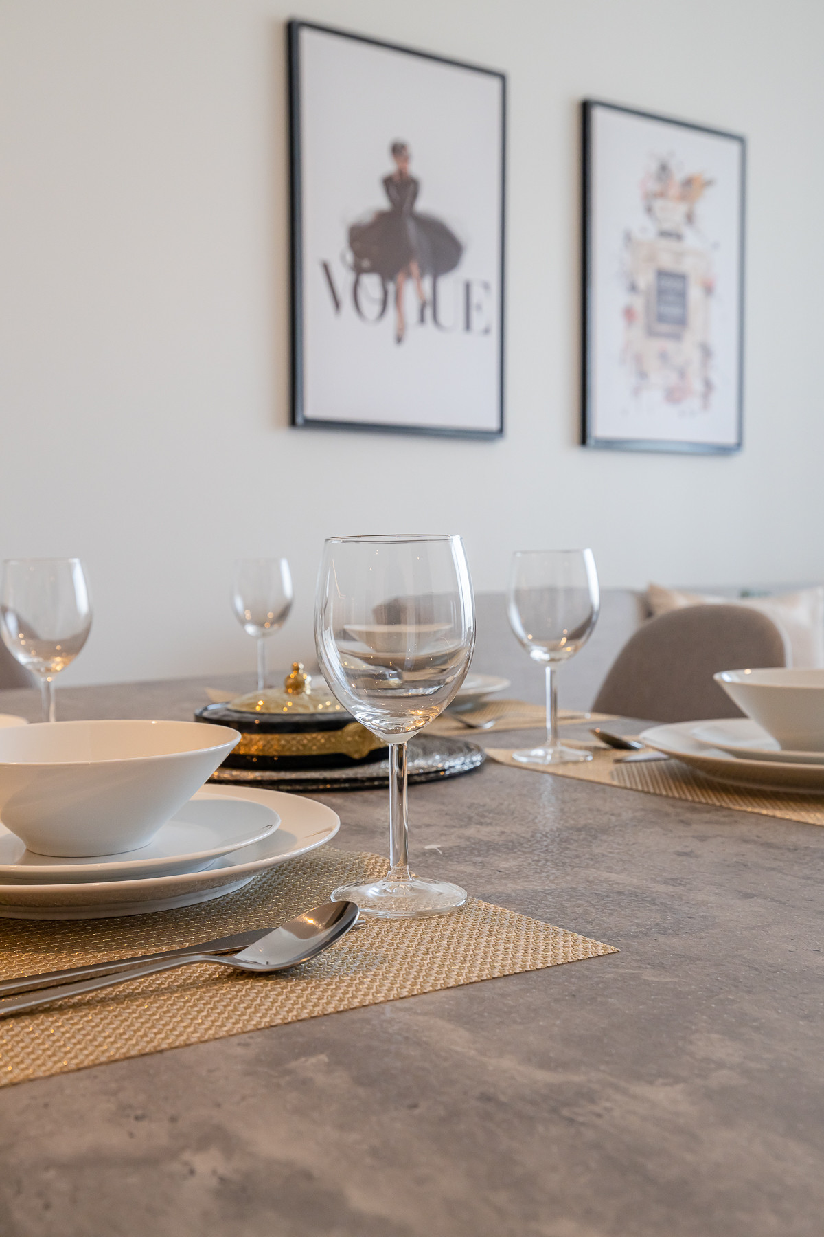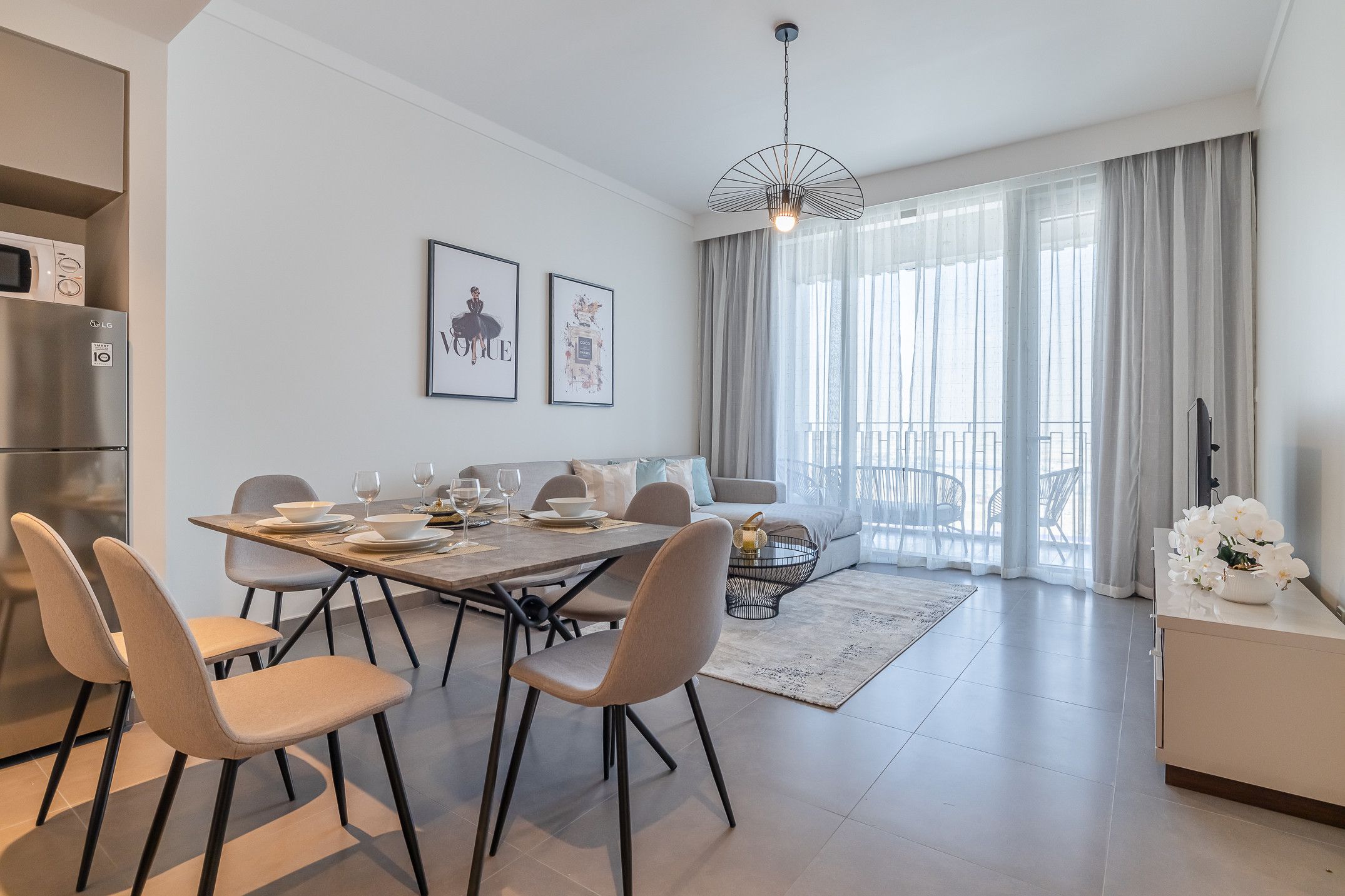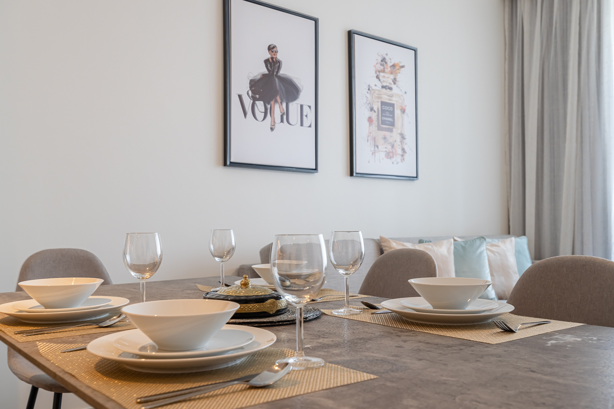 The apartment features high-end furniture and a modern design. The layout is spacious and embraces warm undertones that creates a vibrant atmosphere. Make some memories at this unique and family-friendly place. Tastefully designed living room is styled with a large sofa, smart TV and dining area. The rooms are newly furnished, thoughtfully styled with a minimalistic and modern touch, the beds are well set with fresh linens and high quality matrasses. The property features a fully equipped kitchen with all appliances, modern bathroom filled with toiletries and storage facilities. The apartment is very cozy, spacious and ready to move in, with all the appliances to ensure a smooth and perfect stay.