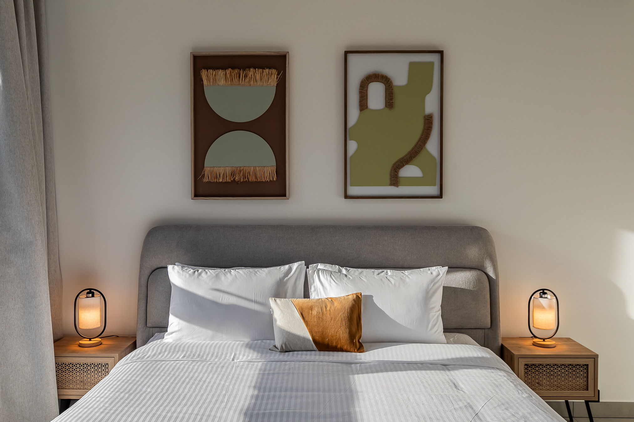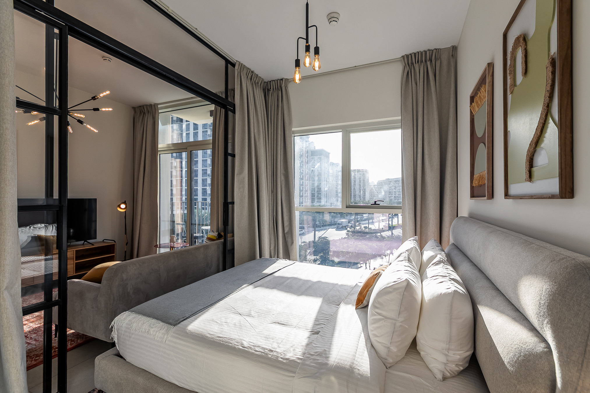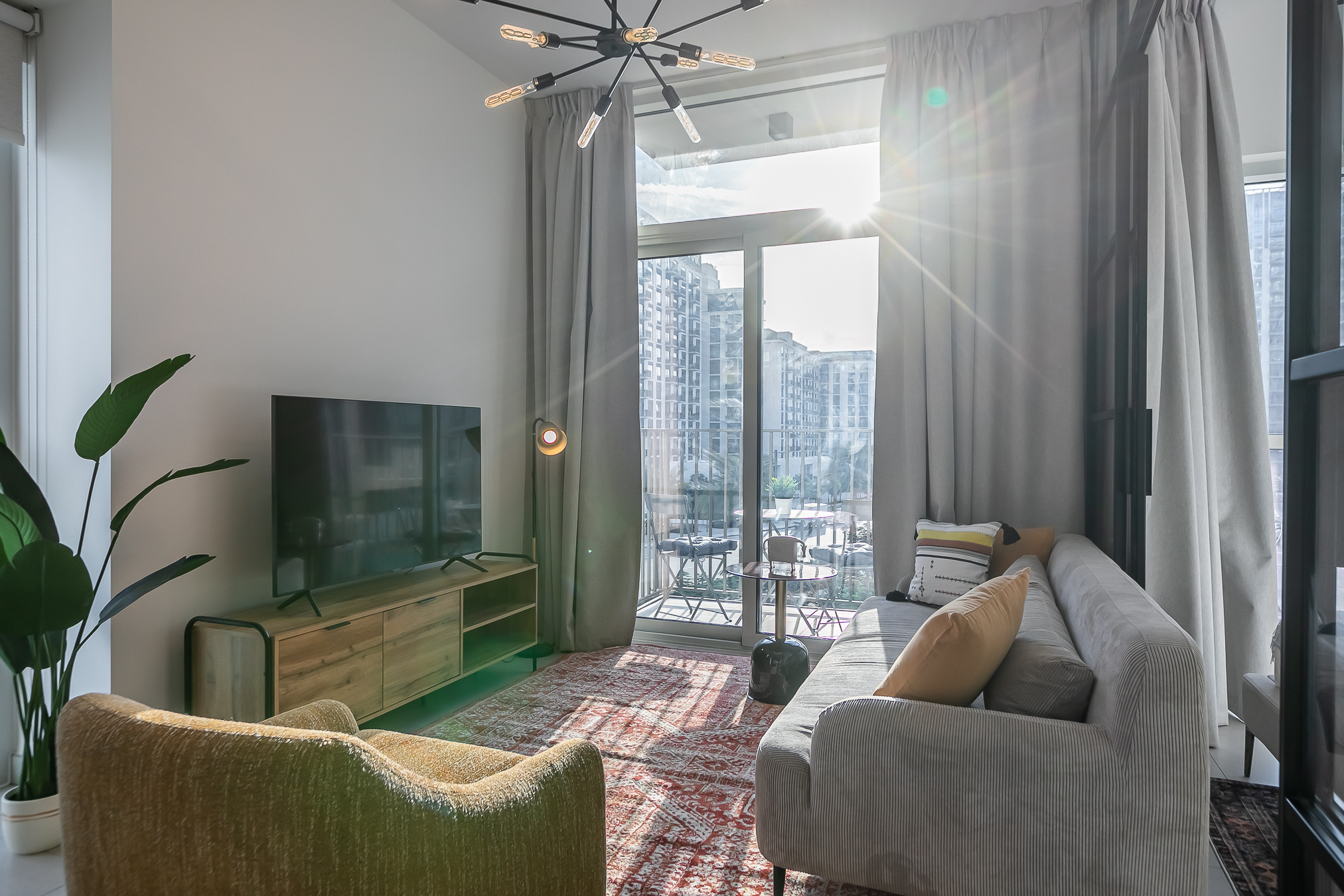 Spacious and stylish 2-bedroom apartment located in Dubai Hills. This apartment will amaze you with its beauty and comfort as the bedrooms are thoughtfully designed with high quality furniture and bed settings. The apartment reflects a tone of modernity and comfort. The bathroom is filled with toiletries and storage facilities. The kitchen is fully equipped with all the appliances, refrigerator, microwave, oven, washing machine, dishes/cutlery, kitchen utensils, toaster, kettle, vacuum etc. .The living room is well put together with a modern outlook, with a large sofa, smart TV and dining area overseeing beautiful views of the city.The home is always professionally cleaned and strategically sanitized for your safety. The apartment is very cozy, spacious, and ready to move in.