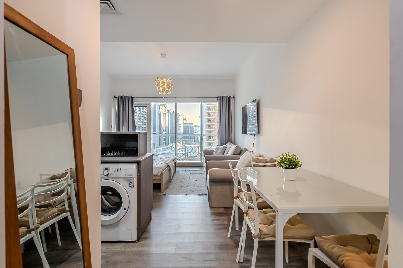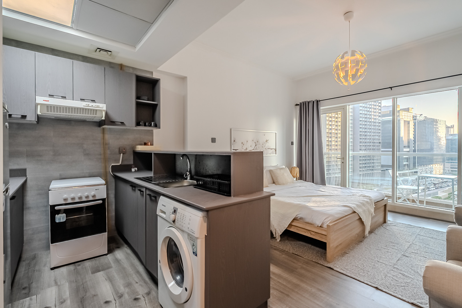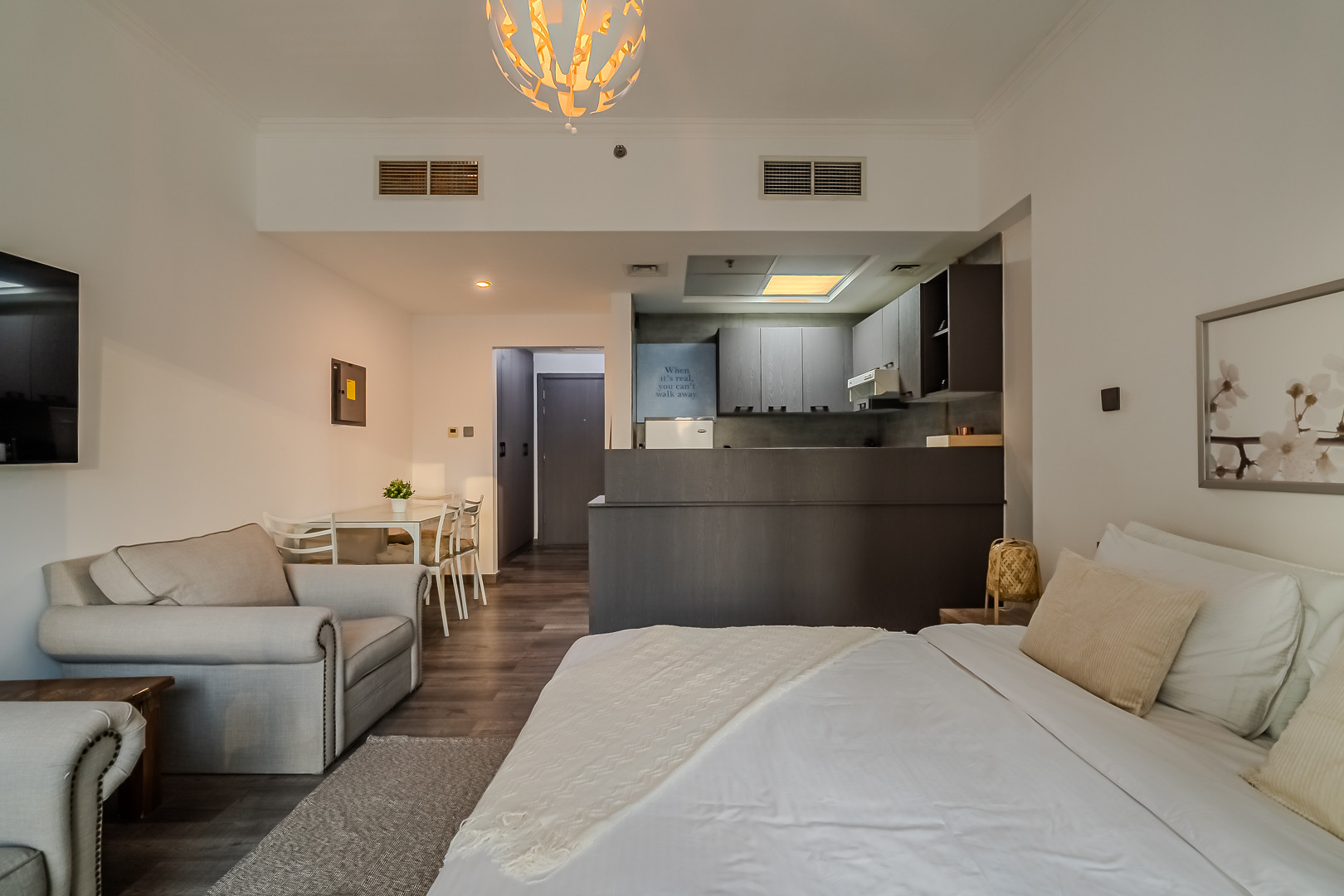Beautiful studio apartment in near Downtown, fully furnished with beautiful décor, giving a light toned color which make you feel warm and pleasant of being home. The apartment is designed with modern and practical elements which provides maximum comfort and the best experience during your visit in Dubai.