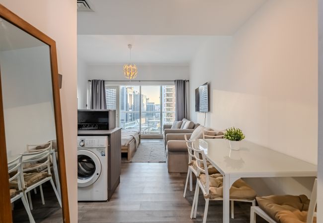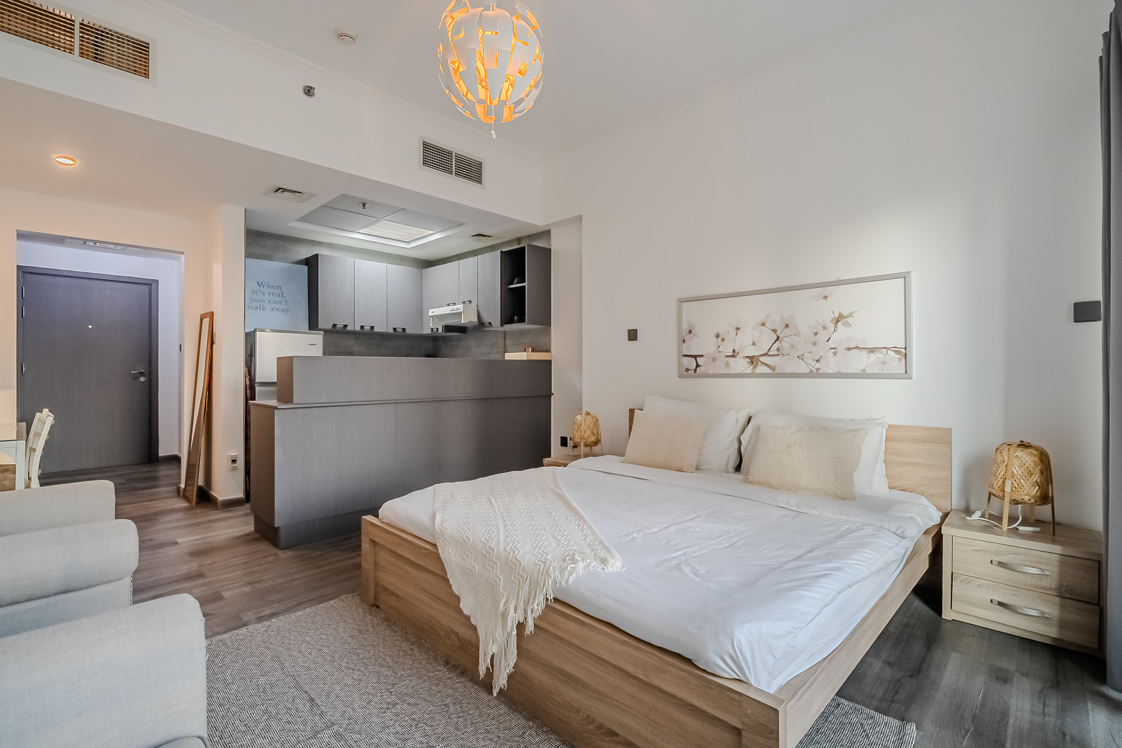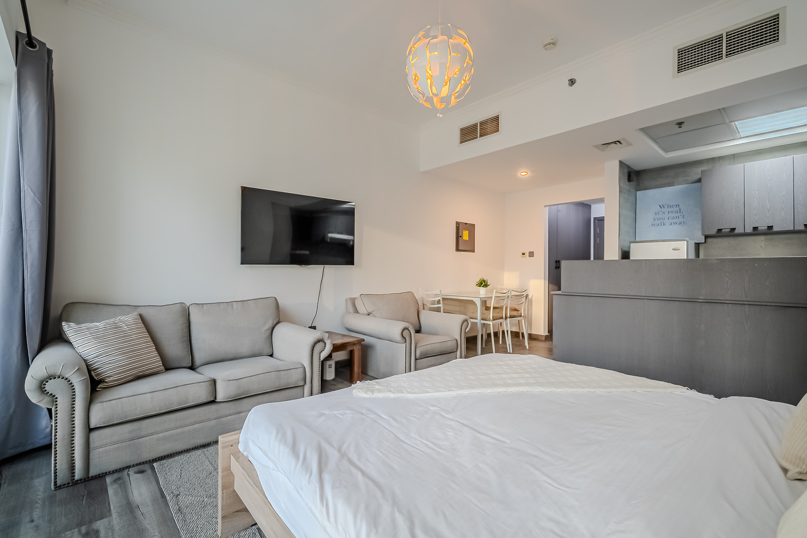 Beautiful studio apartment in near Downtown, fully furnished with beautiful décor, giving a light toned color which make you feel warm and pleasant of being home. The apartment is designed with modern and practical elements which provides maximum comfort and the best experience during your visit in Dubai.