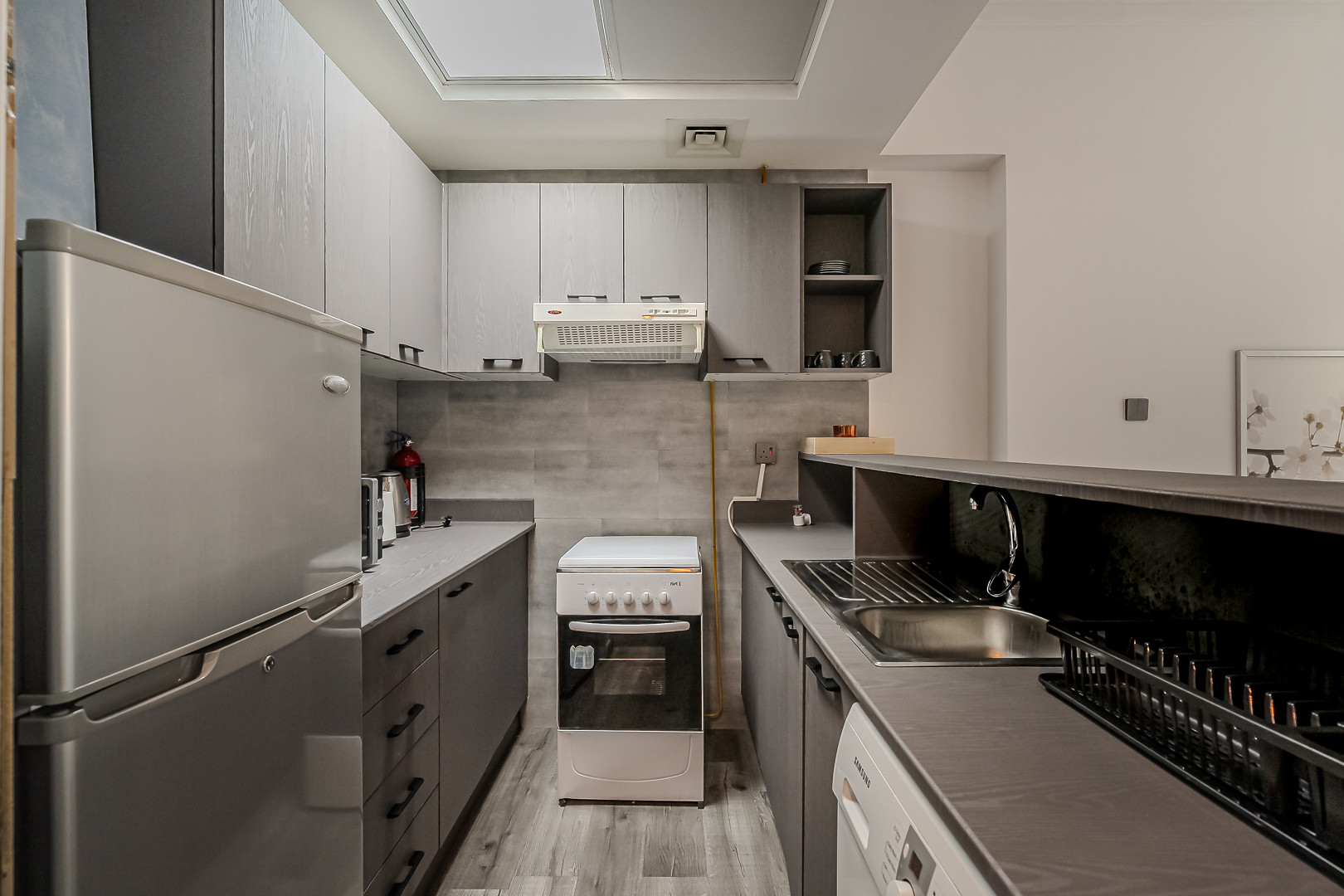 The bedroom is thoughtfully designed with high quality furniture and bed settings. The property features a fully equipped kitchen with all appliances, modern bathroom and guest toilet filled with toiletries and storage facilities. The living room is well put together with a classic look, sofa, smart TV and dining area overseeing beautiful views of the city.
