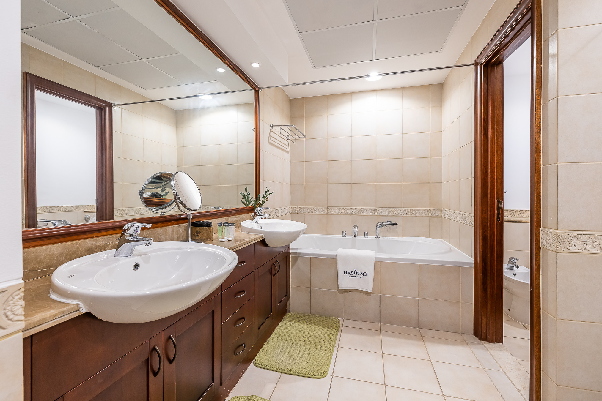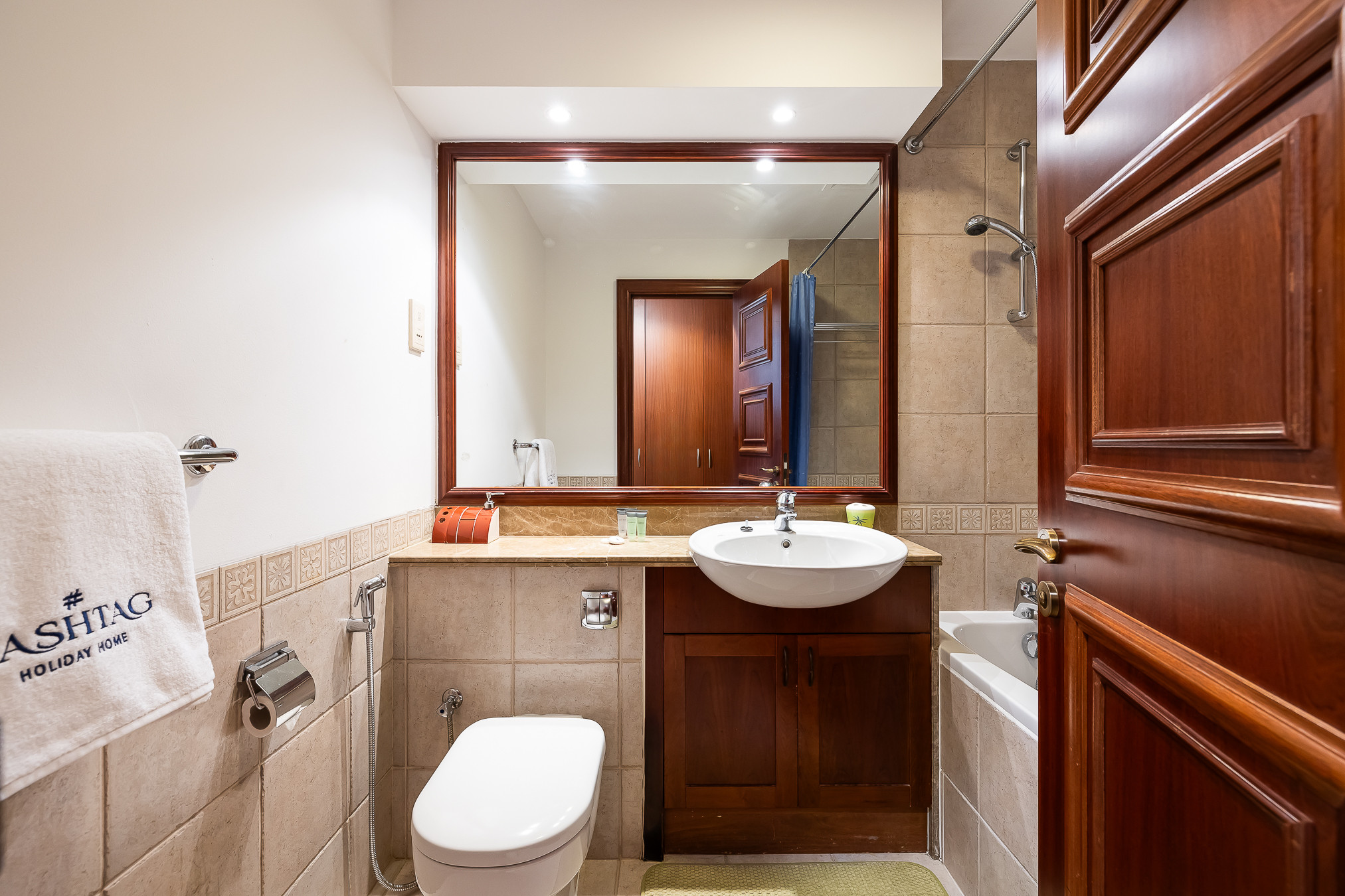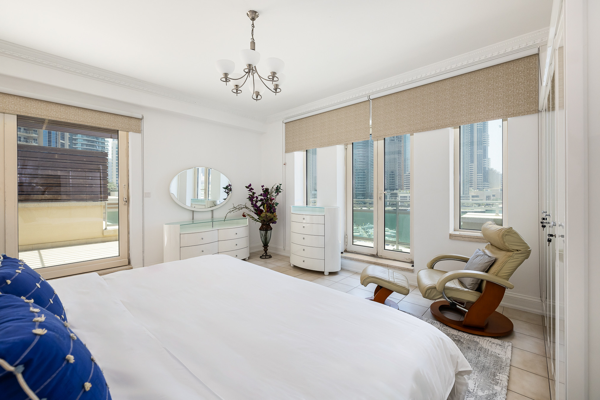 Luxurious 5 bedroom villa in Dubai Marina, located in the perfect destination which is nearby Burj Al Arab. The 3 levels villa has a perfect ambience with plenty of natural light emitting through the windows. Clean linens, minimal furnishings and a simple color scheme that coordinates beautifully with the great outdoors makes this space welcoming. The light-filled living room has a very welcoming and comforting aura. Styled with a large sofa, smart TV, dining area and dining area – this property will fascinate you with its functionality and simplicity. The kitchen is fully equipped with all appliances and the modern bathrooms are filled with toiletries. The villa consists of 5 bedrooms with ensuite bathrooms and a maid room. The bedrooms are well put together with king size bed topped with high quality pallet, fresh linen and towels. Our guests can simply move in and start living as this lovely villa is equipped with everything they might need, to ensure a smooth and perfect stay!