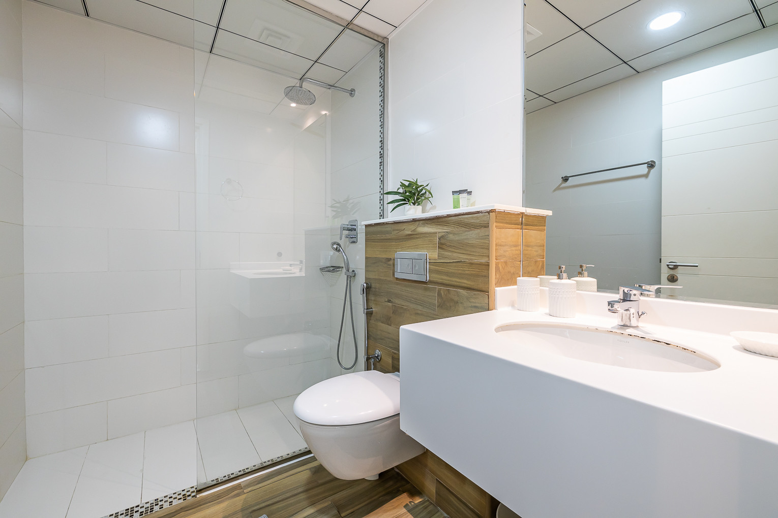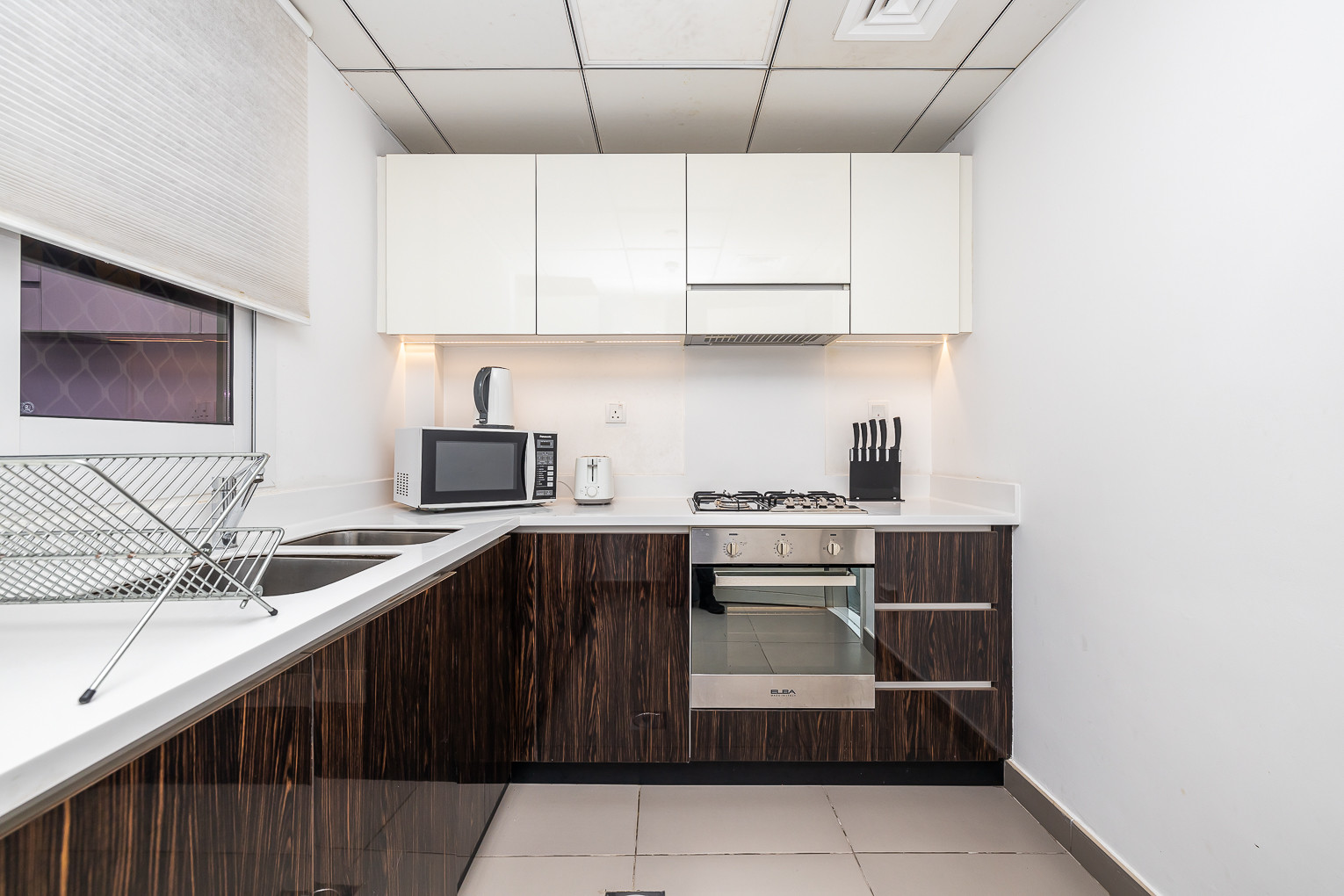 The room is thoughtfully designed with high quality furniture and bed settings. The property features a fully equipped kitchen with all appliances, modern bathroom and guest toilet filled with toiletries and storage facilities. The living room is well put together with a classic look, sofa, smart TV and dining area overseeing beautiful views of the city.