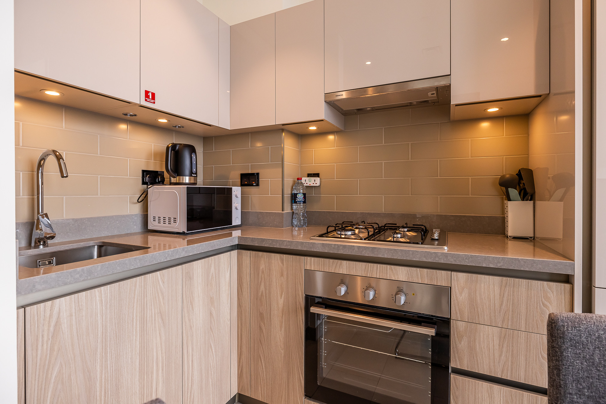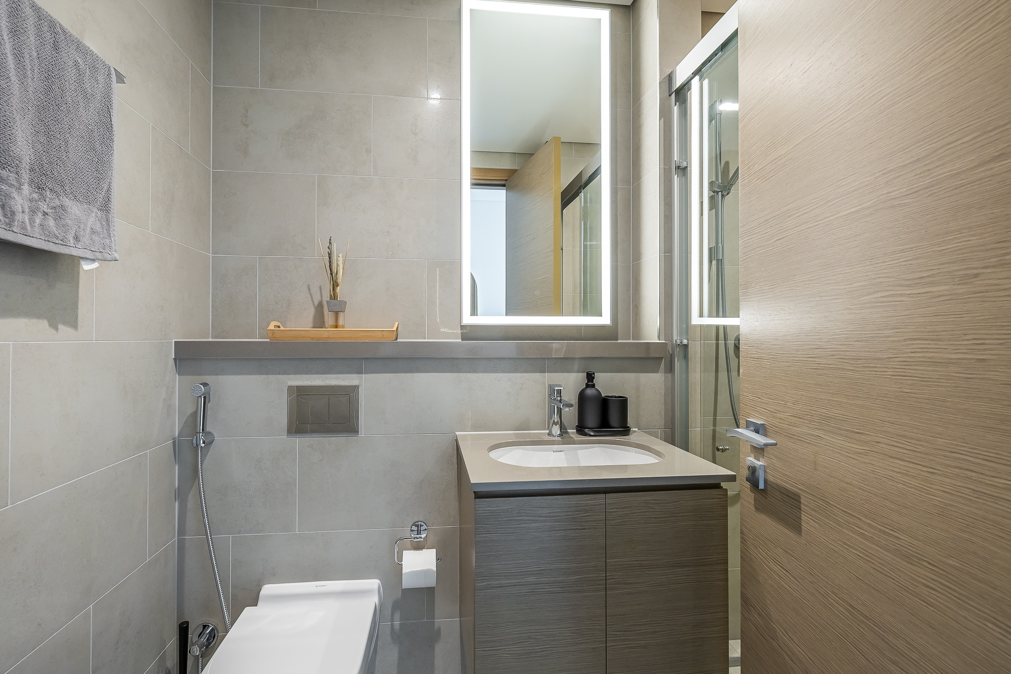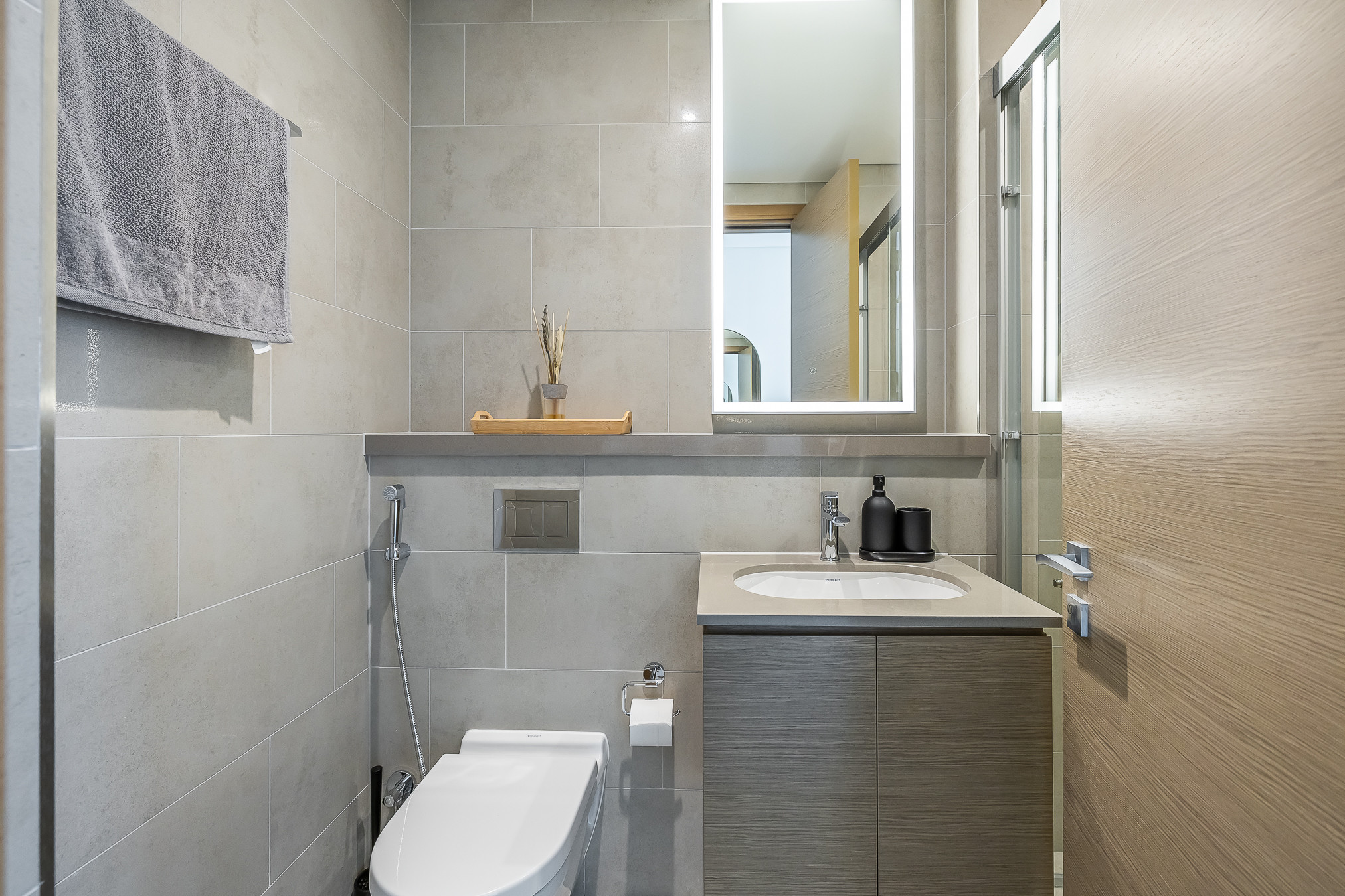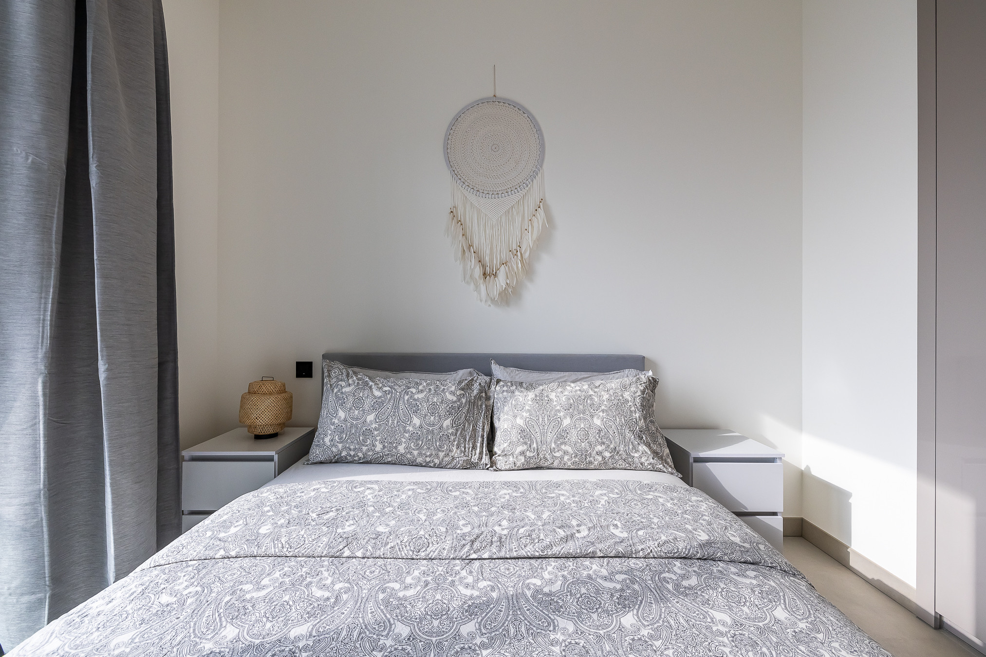 The room is thoughtfully designed with high quality furniture and bed settings. The property features a fully equipped kitchen with all appliances, modern bathroom and guest toilet filled with toiletries and storage facilities. The living room is well put together with a classic look, sofa, smart TV and dining area overseeing beautiful views of the city.