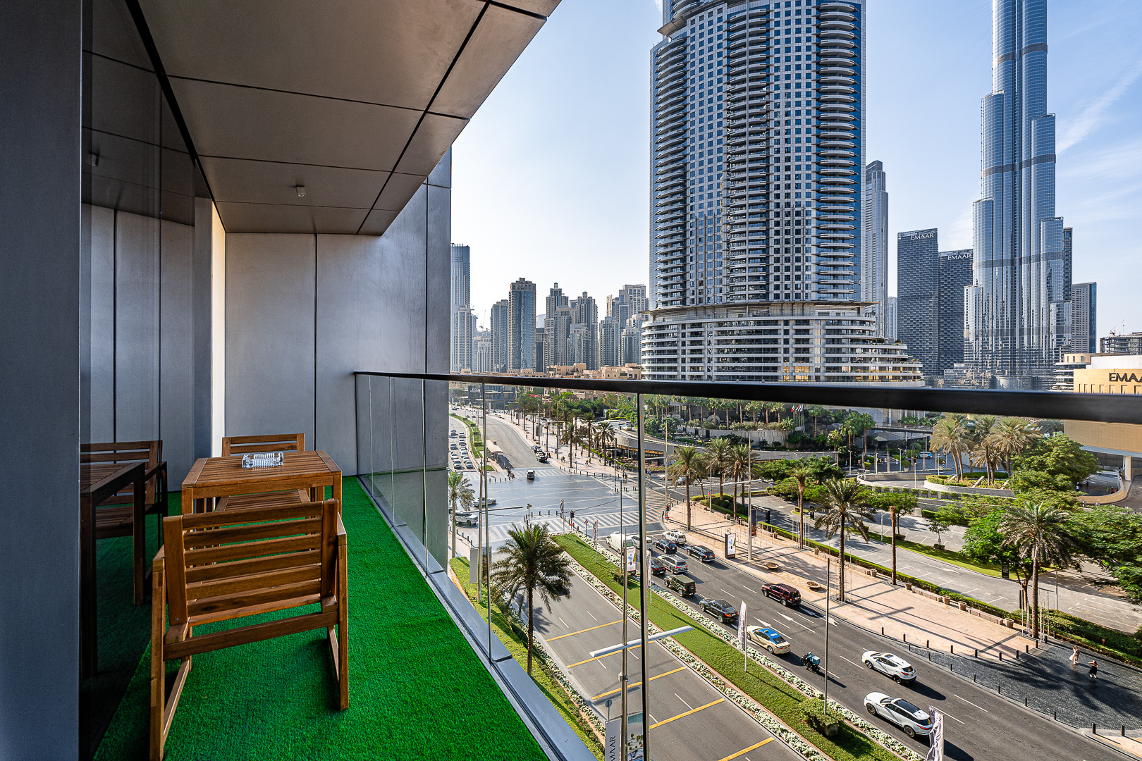 Step out onto the private balcony, where you can unwind and enjoy direct views of the iconic Burj Khalifa — perfect for morning coffee or evening city lights.