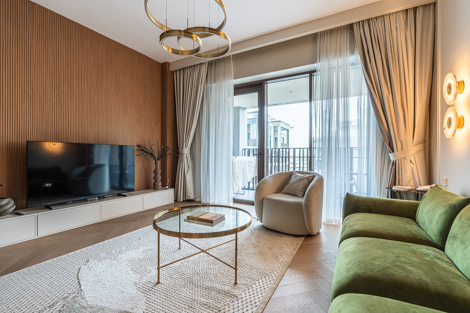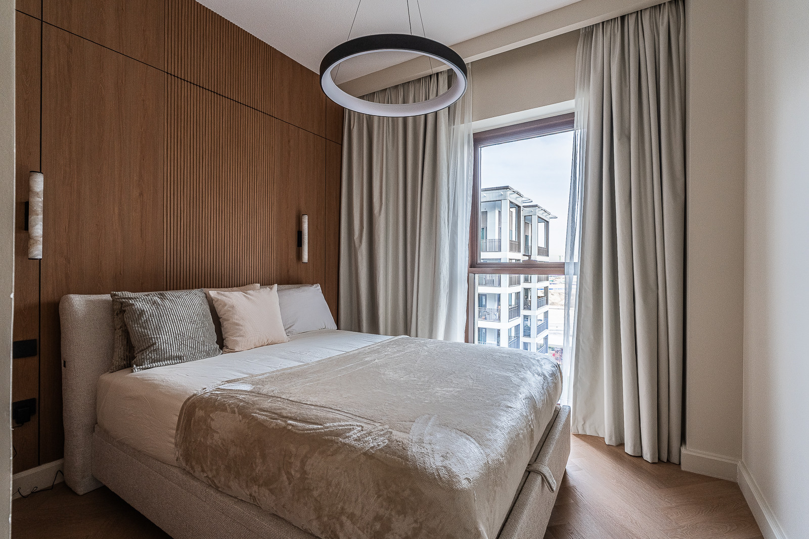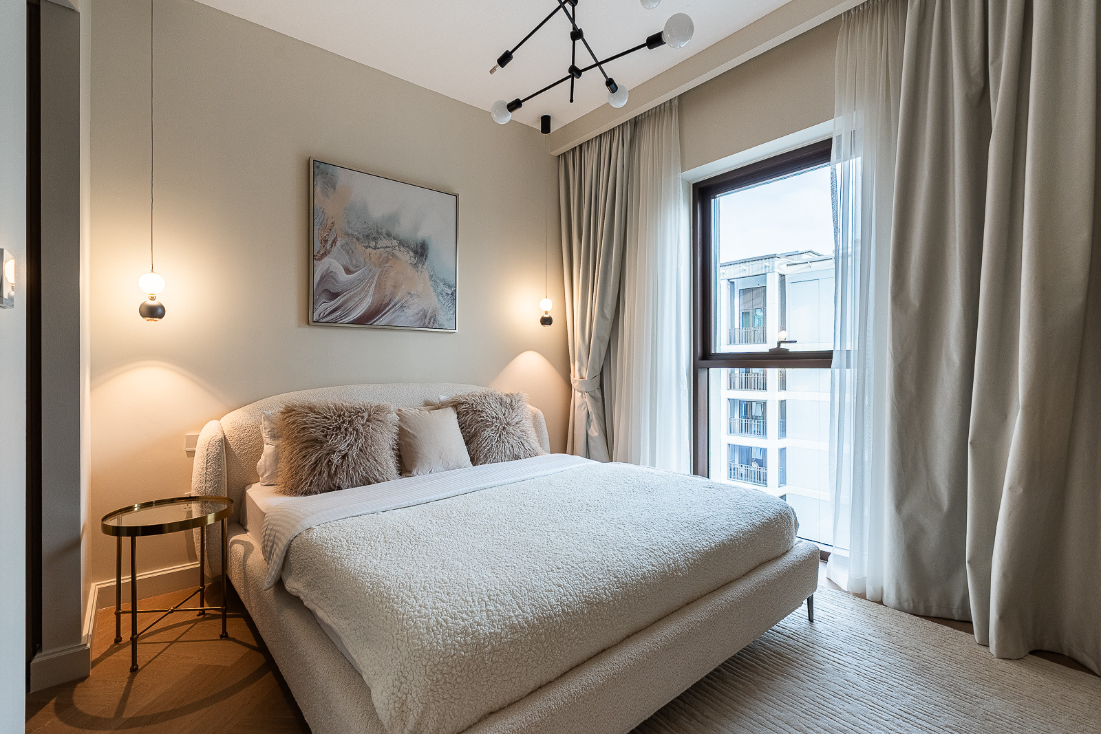 The apartment has an amazing vibe with plenty of natural light flowing through it. Clean linens, minimal furnishings, and a simple color scheme that coordinates beautifully with the great outdoors makes this space welcoming. The light-filled living room has a very welcoming and comforting atmosphere. Styled with a large sofa, smart TV and dining area – this apartment will fascinate you with its functionality and simplicity. The kitchen is fully equipped with all appliances and the modern bathrooms are filled with toiletries. The bedrooms are well put together with king size bed topped with high quality pallet, fresh linen and towels. Our guests can simply move in and start living as this lovely apartment is equipped with everything they might need, to ensure a smooth and perfect stay!