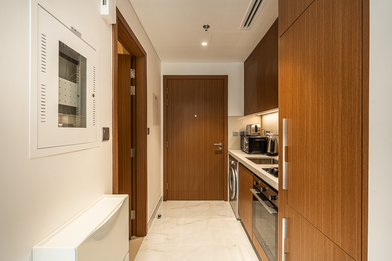 Beautiful studio apartment in near Downtown, fully furnished with beautiful décor, giving a light toned color which make you feel warm and pleasant of being home. The apartment is designed with modern and practical elements which provides maximum comfort and the best experience during your visit in Dubai.