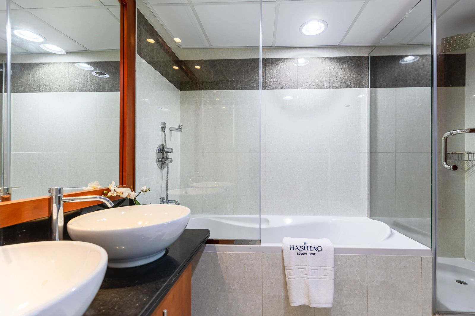 апартаменты в Dubai 3 количество спален вместимостью на 8 чел. Проживание из 192 кв.м меблировано со вкусом и полностью оборудованный, с видом на бассейн. Находится в 110 м от супермаркета "Towers grocery LLC", в 4 km от парка аттракционов "Dubai Garden Glow", в 6 km от метро "Financial Centre Metro Station", в 7 km ? ?? ????? "Satwa Park", в 8 km от аквапарка "Laguna Waterpark", в 9 km от песчаного пляжа "La Mer beach", в 11 km от аэропорта "Dubai International Airport", в 11 km от аэропорта "Dubai International Airport", в 14 km от поля для гольфа "The Track Meydan Golf" и расположено в идеальное для семейного отдыха зоне и рядом с торговыми центрами и ресторанами.Размещение имеет лифт, сад, стиральная машина, утюг, Доступ в интернет (wi-fi), Фен, Балкон, Тренажерный зал, кондиционер, бассейн жилого комплекса, 1 телевизор. Кухня, оборудовано холодильник, микроволновая печь, духовка, посудомоечная машина, столовые приборы, кухонная утварь, тостер и Чайник.