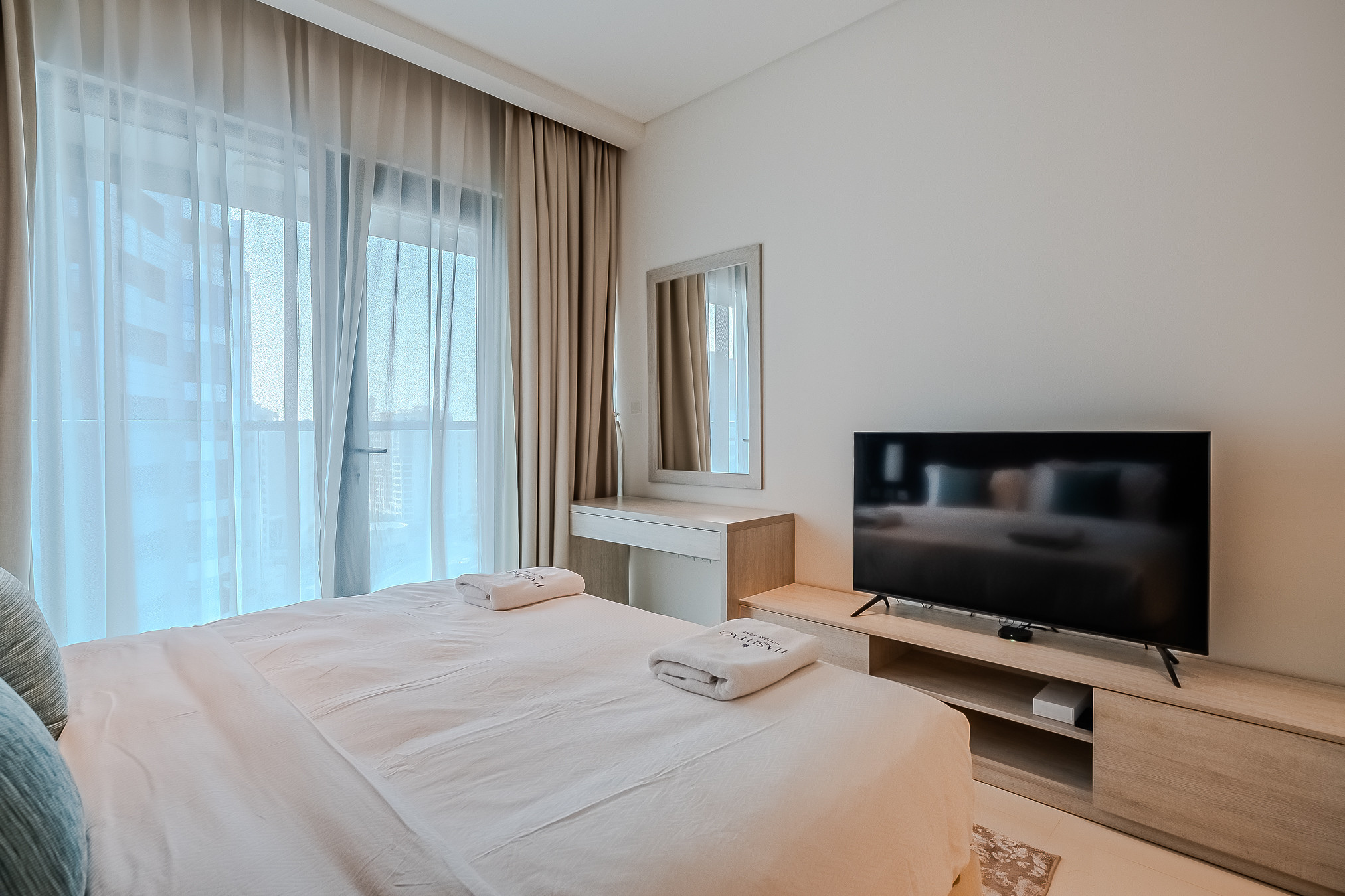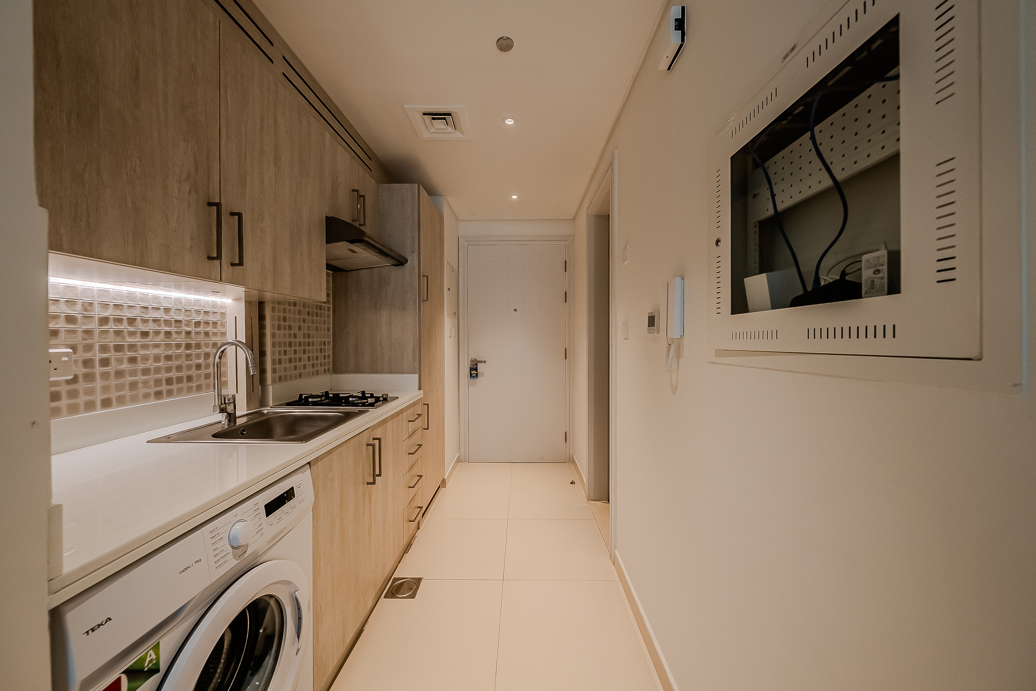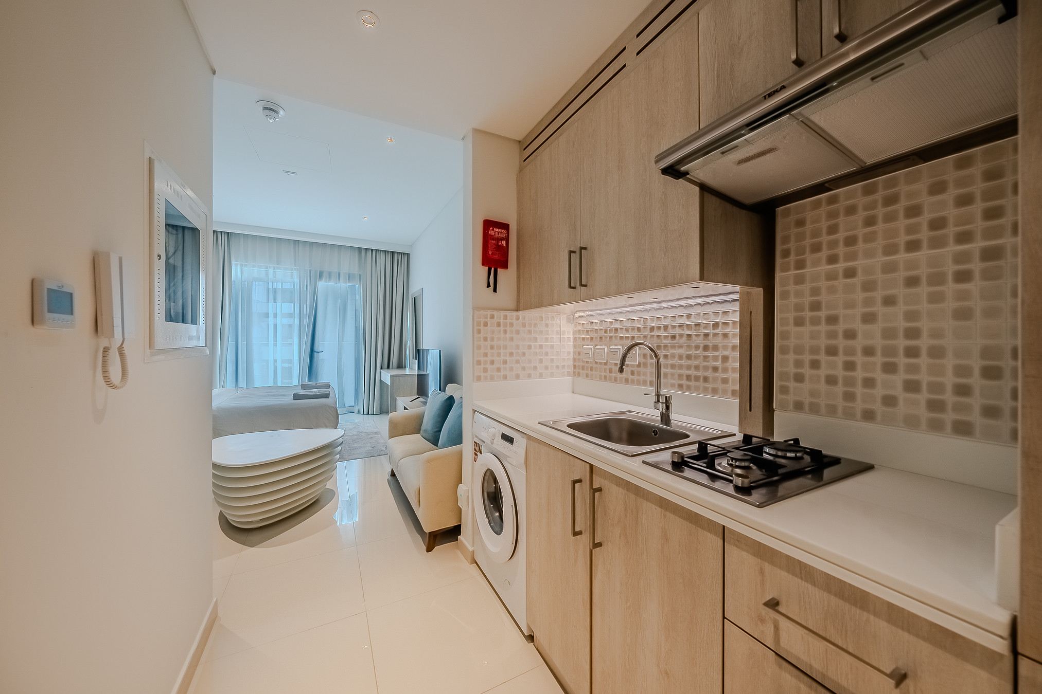 апартаменты в Dubai 1 количество спален вместимостью на 2 чел. Проживание из 33 кв.м. Размещение имеет сад, стиральная машина, утюг, Доступ в интернет (wi-fi), Фен, Балкон, Тренажерный зал, кондиционер, бассейн жилого комплекса, гараж в этом же здании, 1 телевизор. Кухня, оборудовано холодильник, микроволновая печь, духовка, столовые приборы, тостер и Чайник.