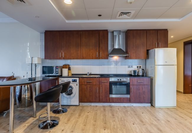 在 Dubai 的 公寓 有 1 卧室 有 可容纳 3 人. 住宿 有 123 m². 配有 庭院家具, 洗衣机, 熨斗, 互联网接入 (Wi-Fi无线网), 吹风机, 阳台, 儿童游乐区, 健身房, 空调, 泳池 公共及儿童泳池, 车库在同一建筑物内, 1 电视, 卫星电视. 该 独立式厨房, 配备有 冰箱, 微波炉, 烤箱, 碗碟/刀具, 餐具/厨房, 面包机 和 烧水壶.